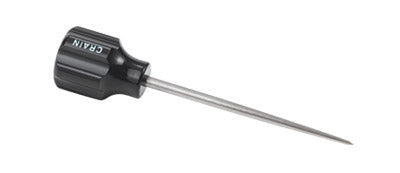 The sharp, high-carbon steel point penetrates the carpet’s backing for fast removal from the tack strip. It can also be used for light carpet stretching in tight areas, such as around toilets. Press the point into the tack strip and lift to stretch the carpet. The point has an opposite flat end seated in the top of the hard plastic handle for hammering when necessary. Handle is rounded to fit the palm comfortably. Net weight: 3 oz.